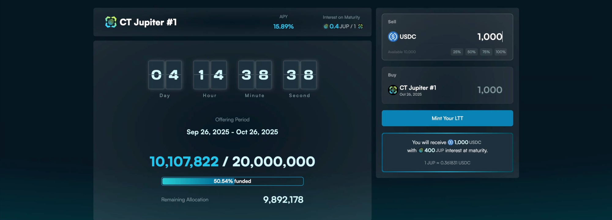 - Mint your first LTT: choose an offering, enter amount and sign.