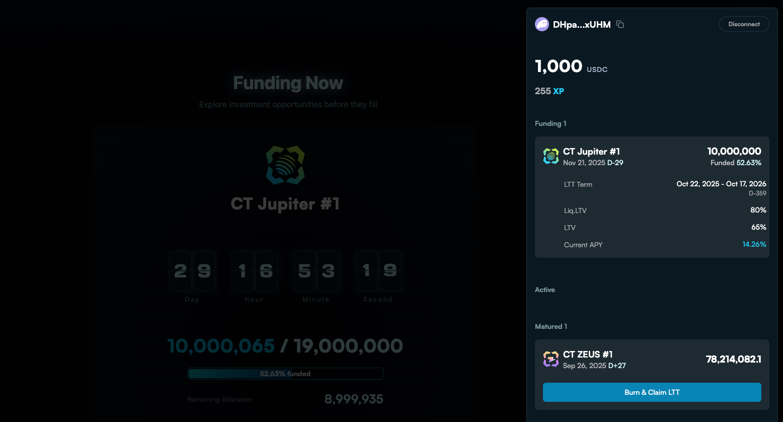 - Track your LTTs on Portfolio page. Claim your principal and interest after maturity.