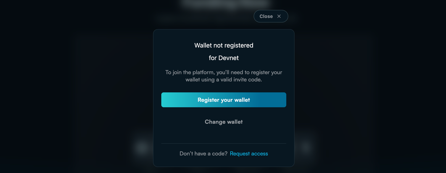 If your wallet isn't whitelisted, register or request access to join the Devent.